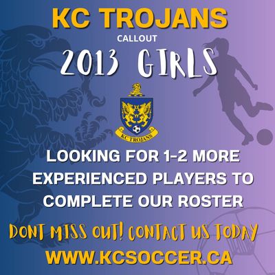 **KC is looking to recruit an experienced Goalkeeper to complete our Tier 1 roster. Please register for assessments and we will contact you. Additional assessment spots are invite only**